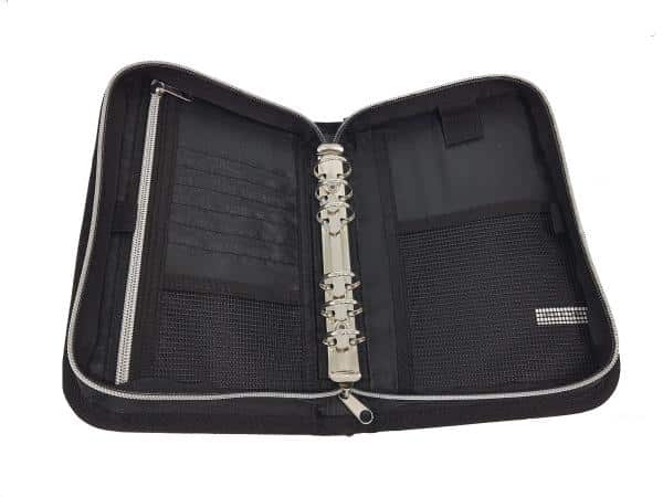 De map heeft veel vakjes om dingen in op te bergen, handig voor bijvoorbeeld extra pasjes of verklaring van de duikmedische keuring.